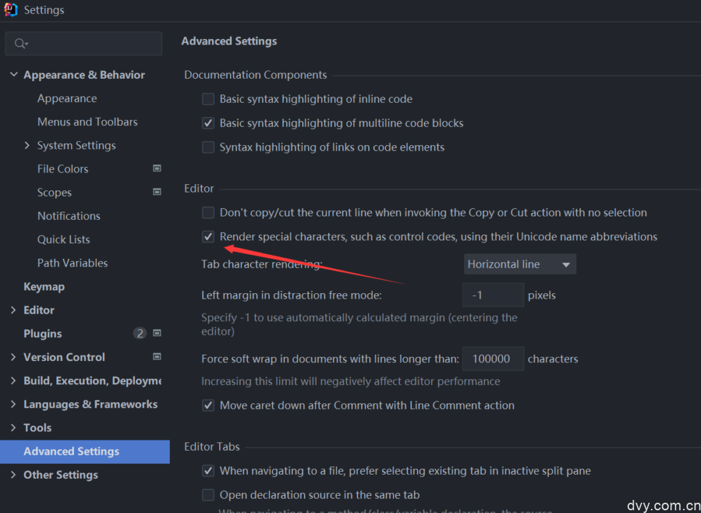 取消Render special characters,such as control codes, using their Unicode name abbreviations